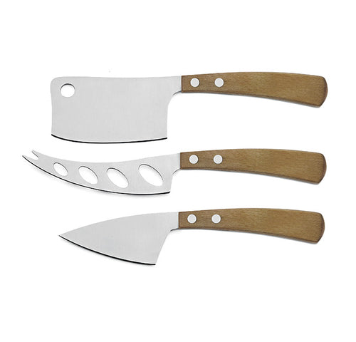 Caseus Cheese Knife Set in Stainless Steel and Light Wood Handle
