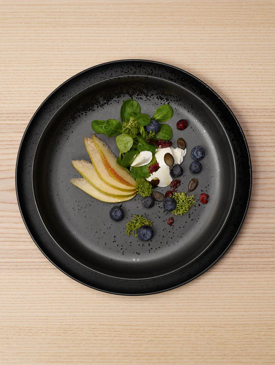 Plates of the Coppa Kuro series are dishwasher, oven, freezer and microwave safe.