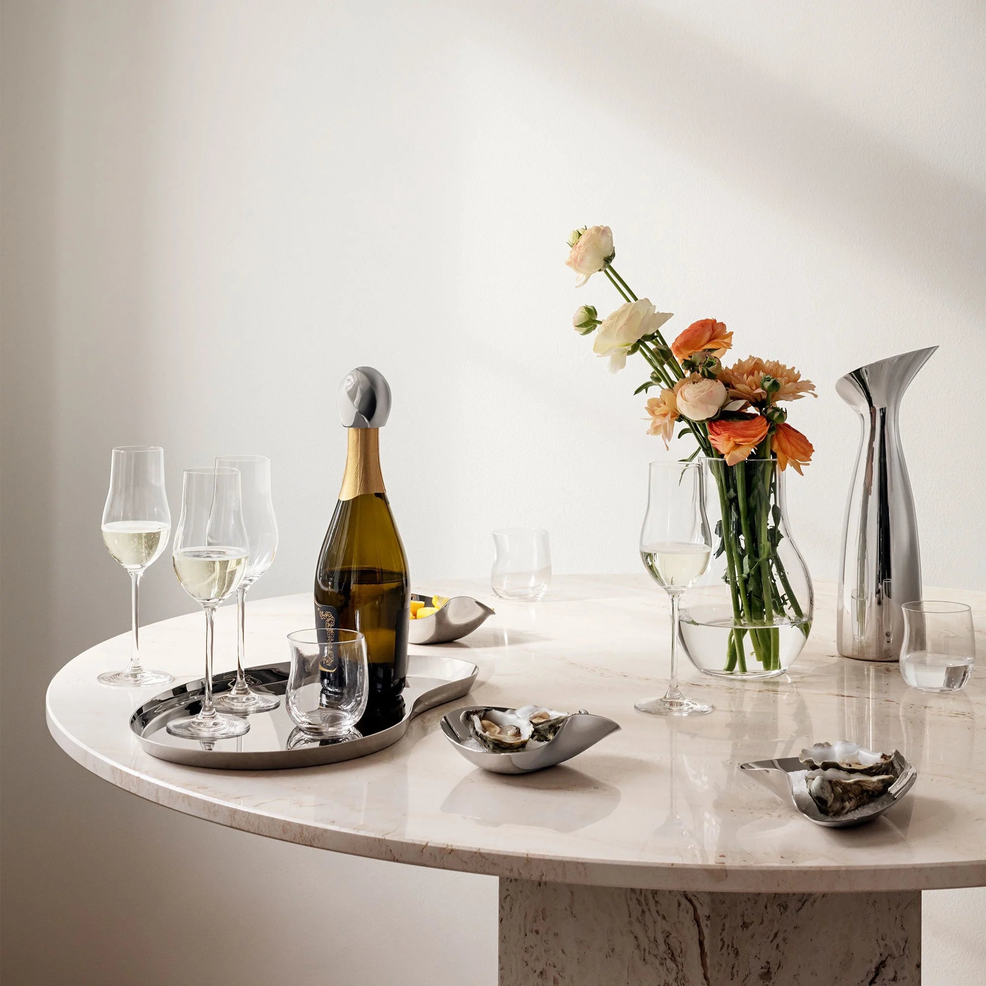 Designed for the individual with a taste for the finer things in life, Helle Damkjær's Indulgence tray in stainless steel is an example of elegance with a contemporary feel. The piece is not dishwasher safe.