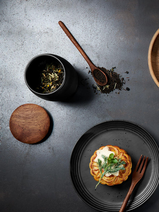 Tea caddy with lid made of acacia wood incl. aroma closure. Protects the contents from moisture and sunlight.