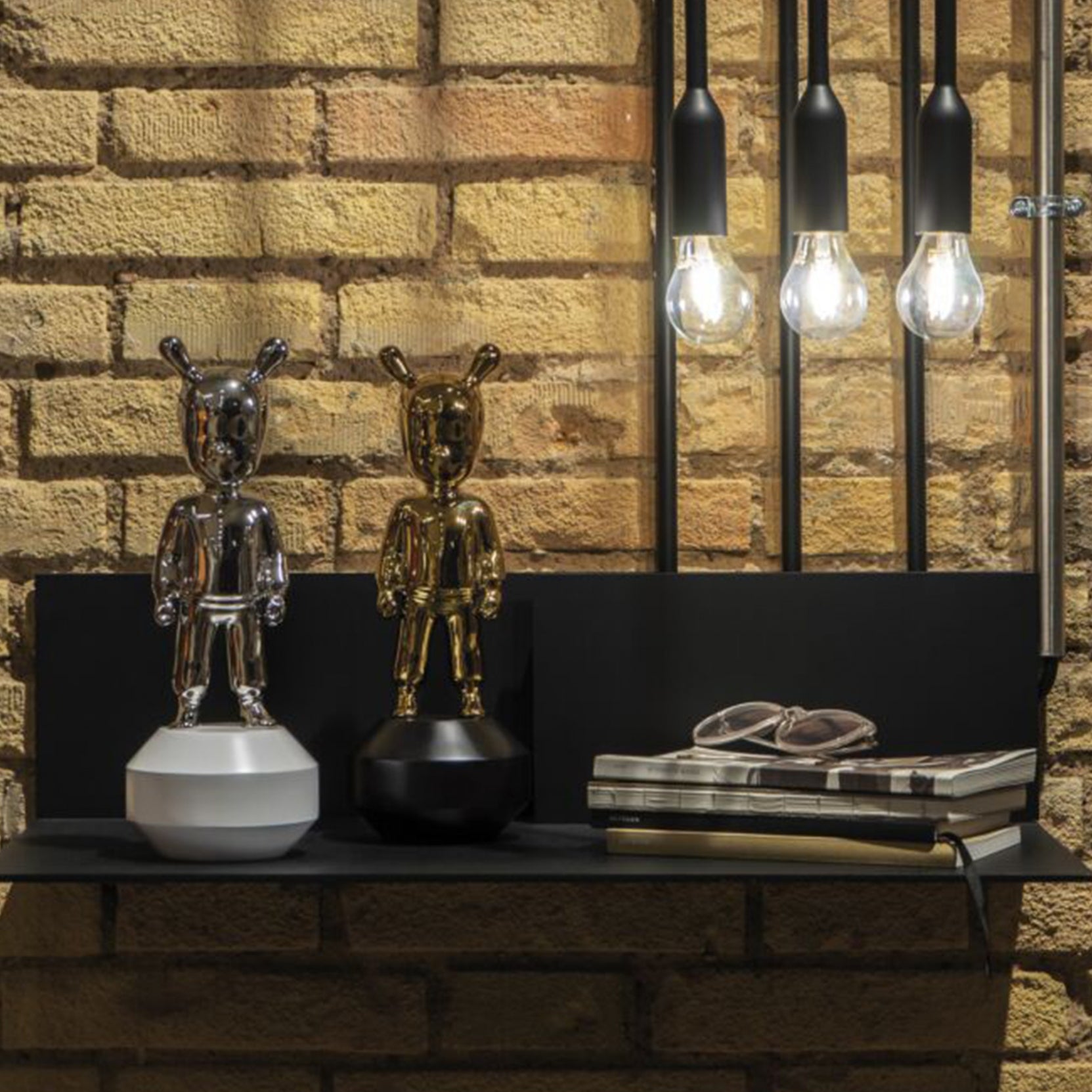 Bold and innovative creations, with surprising decorations that enhance designs that are here to stay. A porcelain piece in a golden metallic color on a black base, perfect for decorating contemporary interiors. Handcrafted in Spain.